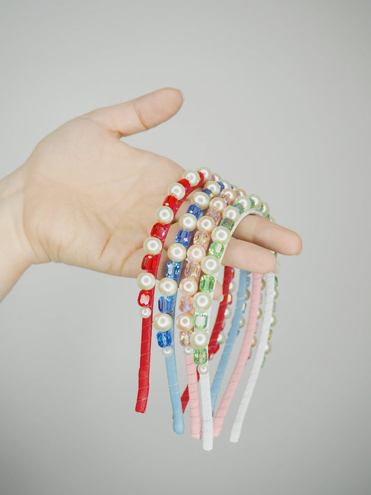 Alexa - red glass bead and pearl headband with delicate iridescent effect