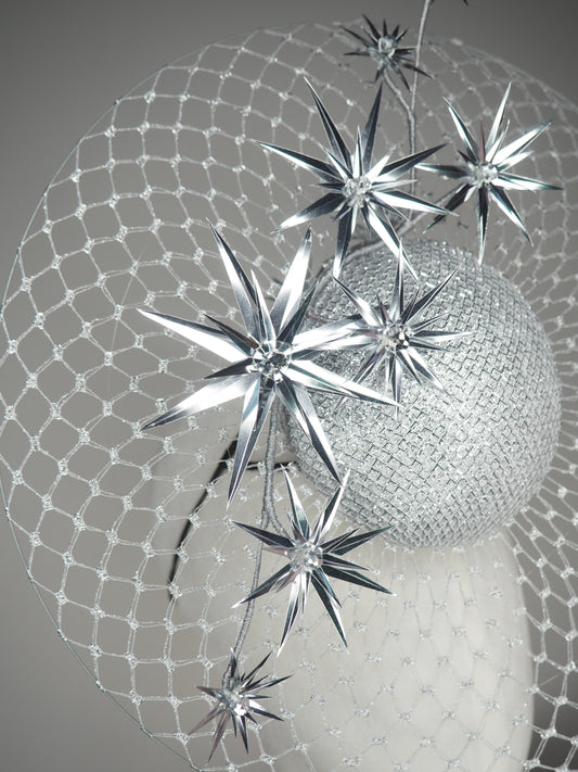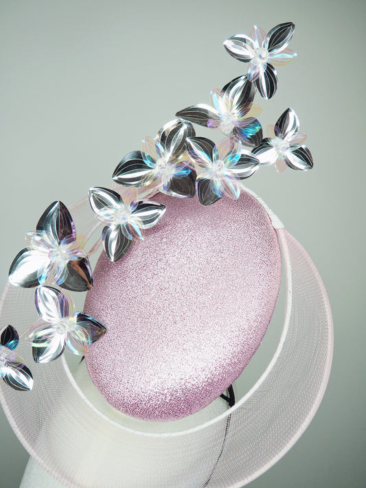 Pink mist - Pastel pink Percher with detached pink crin veil and silver and iridescent buds and