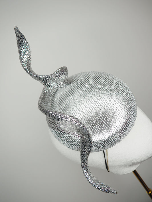 Lightning Strikes - Silver lurex and leather button with sculpted silver wired swirl