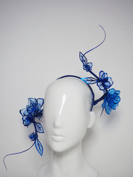Shades of Blue - Blue crystoform Rose Vine swirl headband with quills