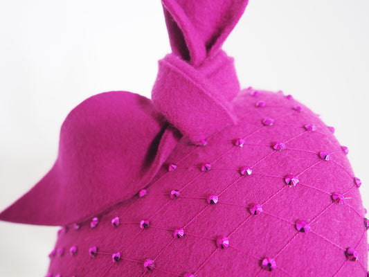 Magenta mischief - wool felt Magenta facehugger beret with hand dyed veil and magenta crystals