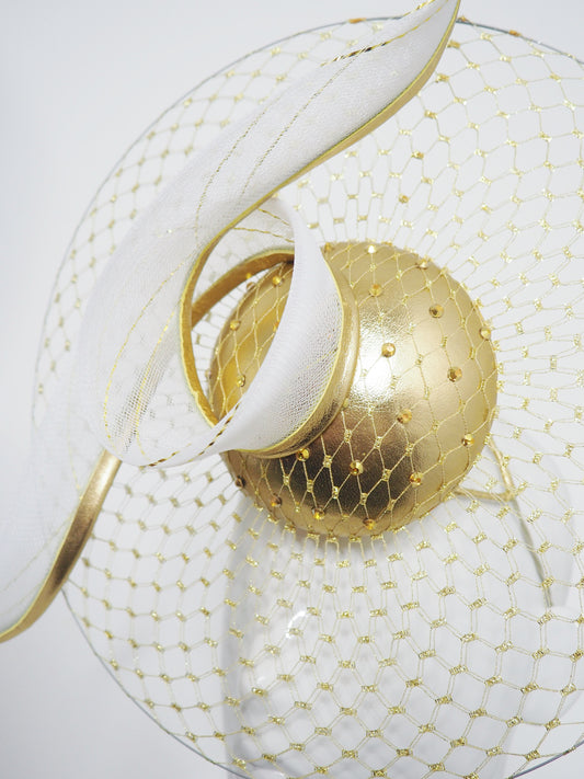 Sunshine swirl - Wire veil percher with gold accents and a crinoline swirl