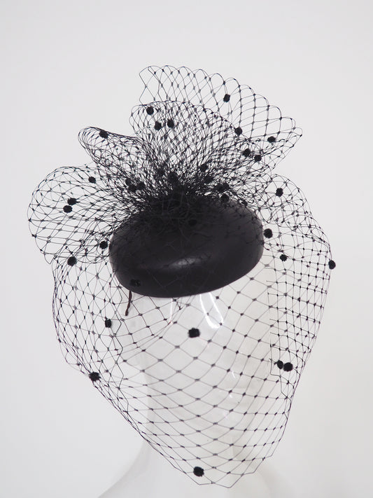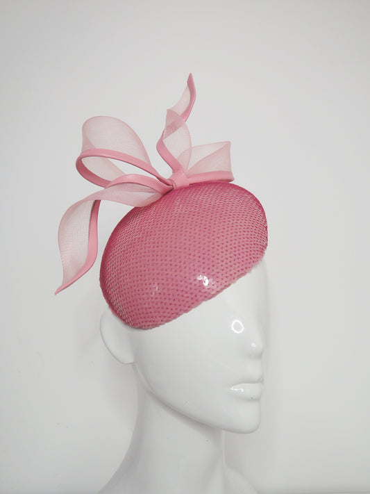Dusty Rose- Dusty rose hand dyed sequin face hugger beret with pink leather edged crinoline bow.