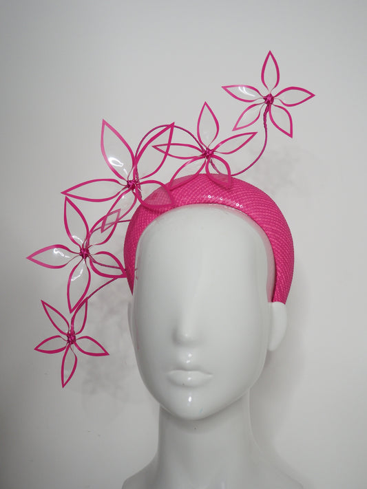 Hot Pink Pop - Hand Dyed Hot Pink sequin 3d headband with dancing crystoform flowers