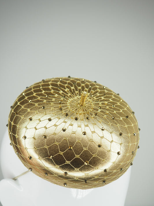 Peachy Pink - Iridescent pastel pink blossoms and quill on a peach blossom sequin facehugger base.