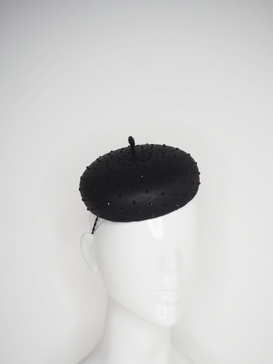 Mia - Sparkle - Black leather 3d blocked headband with veil and clear crystal detail