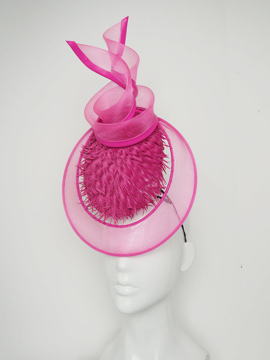 Tilt-a-whirl - Pink shredded patent leather percher with wired crinoline veil and swirl