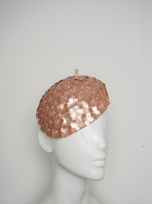 Blossom - Peachy pink - Dusty pink beaded Sequin flower on a peach leather beret