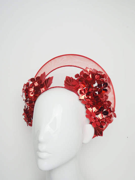 Red Glimmer - Red Hydrangea wired Halo headpiece