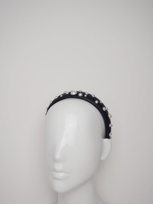 Zoe Pearl - Black Leather padded headband with pearl detail