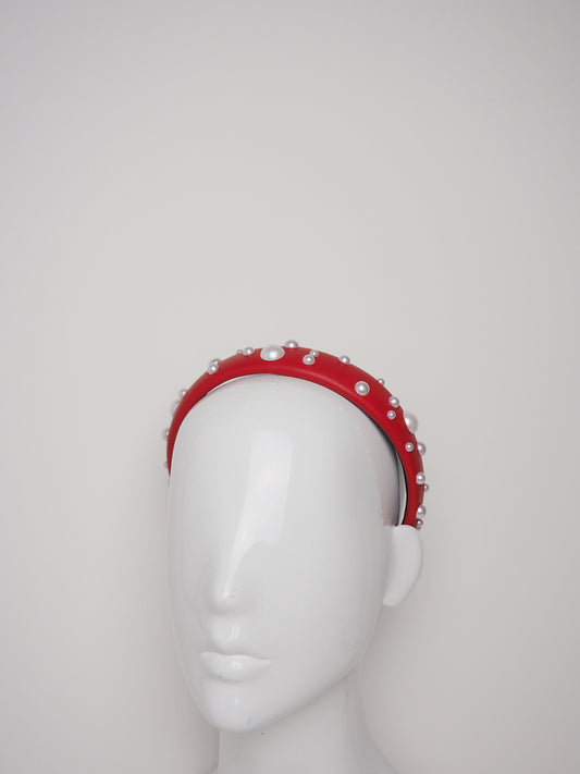 Zoe Pearl - Red - Leather padded headband with pearl detial