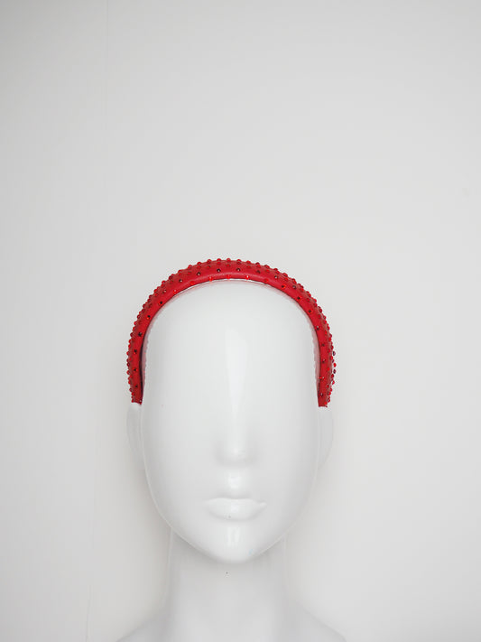 Zoe Sparkle - Leather padded headband with veil and Crystal Detail - Red - Full embellished