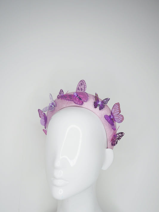 Butterflies in your eyes - Lavender pink lurex fleck headband with pink, silver a purple crystoform butterflies