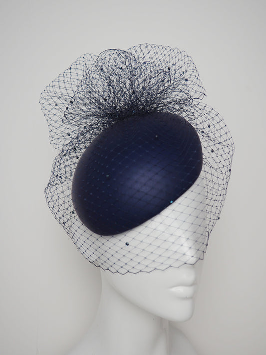 Navy Clouds - Delicate navy leather face-hugger with Diamanté veil