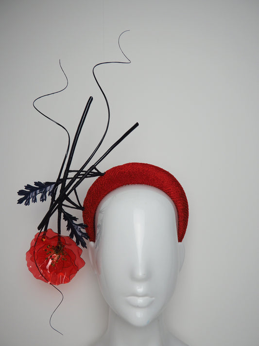 Lone Pine Poppy - Vintage Straw cloth 3d headband with lone crystoform poppy.