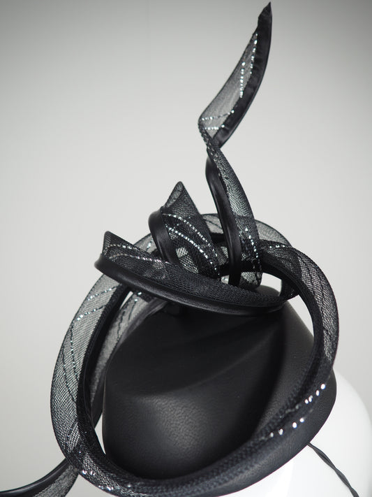 Serpentia - Black asymetrical leather sharp pillbox with crinoline swirl knot