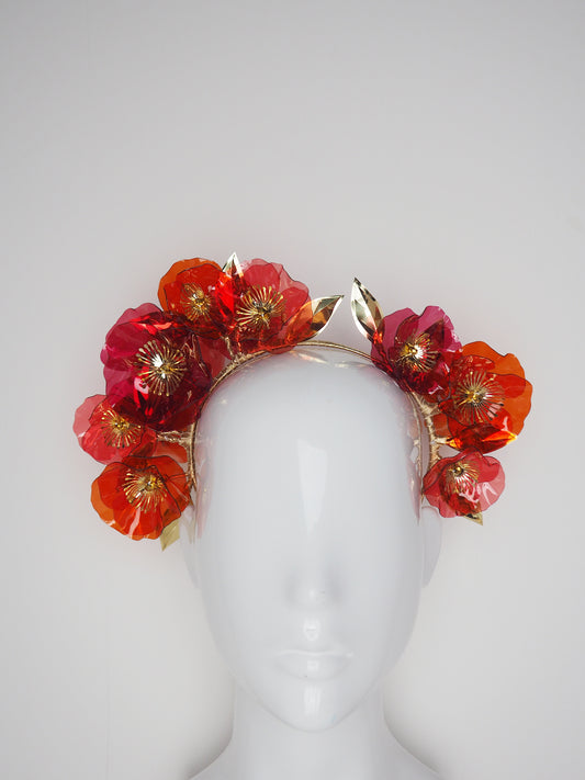 Popping Poppies - Crystoform poppies in shades of red and rust with gold accents
