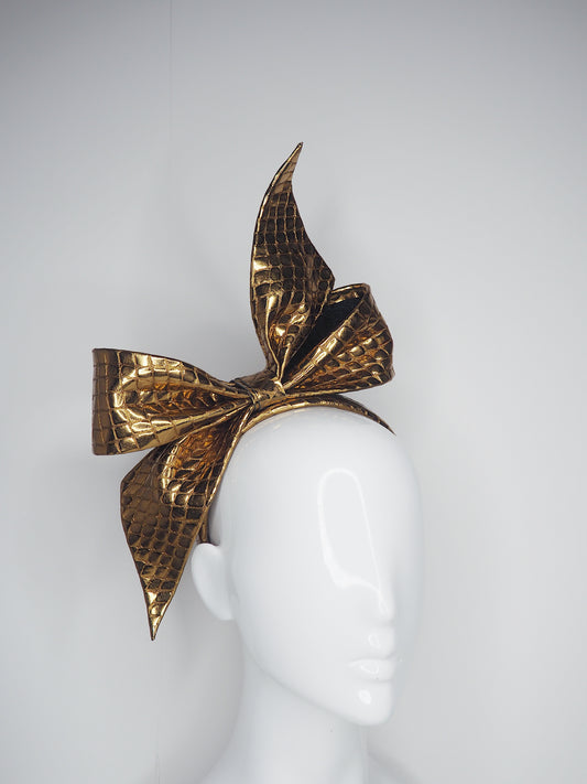 Bronze Bow - Bronze textured leather on a handmade leather headband.