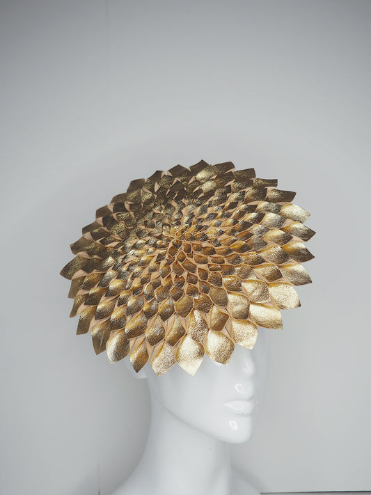 Golden Dahlia - Gold Leather Percher disc with leather petal detail