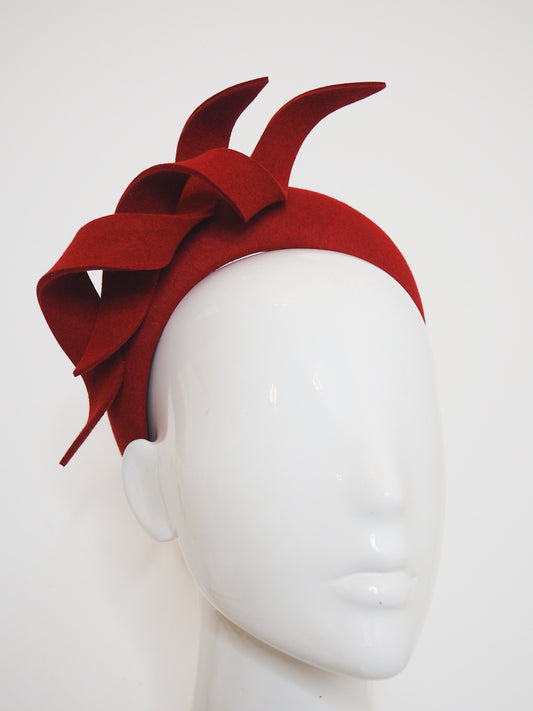 Deepest Love - Deep red fur felt headband with double felt swirl.