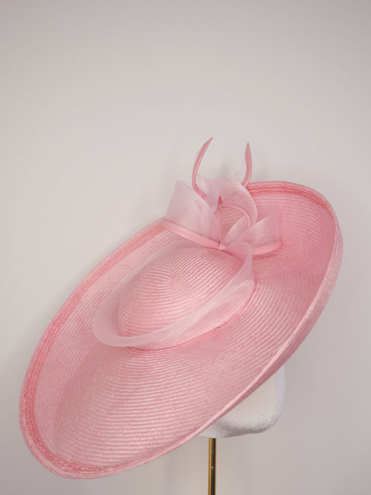 Pink Lady - Baby pink upturned brim hat with sculptural crinoline bow detail