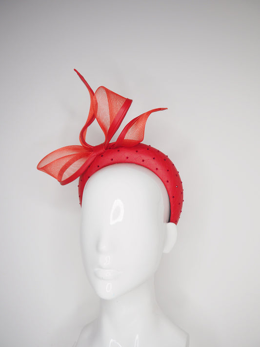 Little Bow Peep - Red Leather 3d headband with leather edged bow and crystal detail