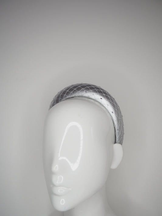 Mimi - Silver - Leather petite 3d headband with veil and crystal detail