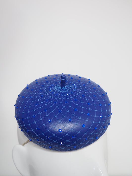 Glitz and glam - Leather button beret with crystals - sapphire blue