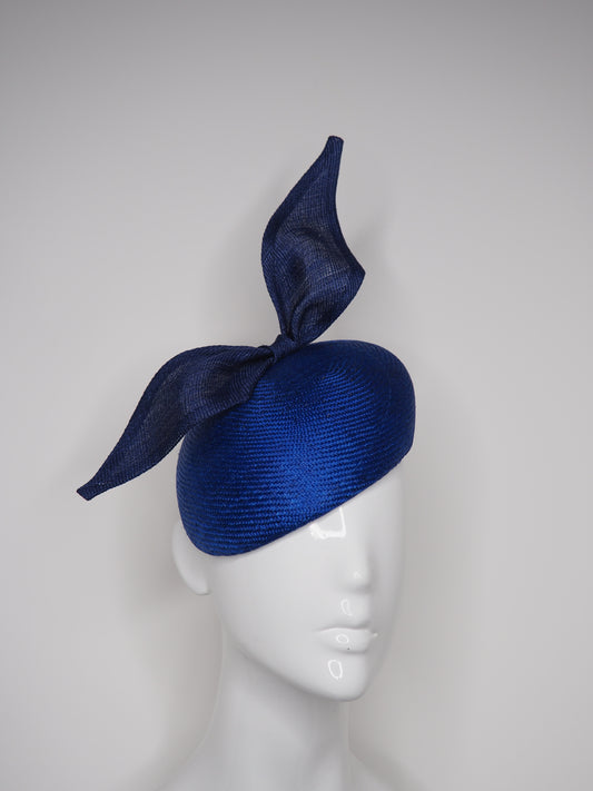 Blue Ribbon- Blue Parisisal Straw Beret with a simple Tinalak bow