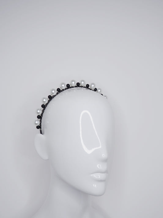Alexa - Black leather headband with Pearl and Black bead Detail
