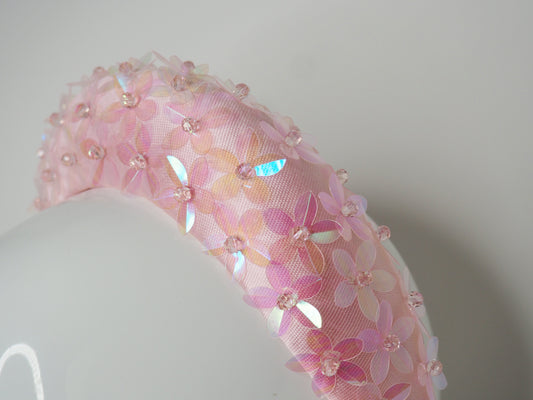 Mia - Baby pink 3d headband with iridescent sequin detial