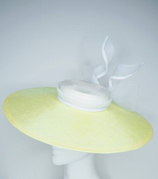Zest - Citron lemon lime parisissal straw brim with white leather and crinoline bow