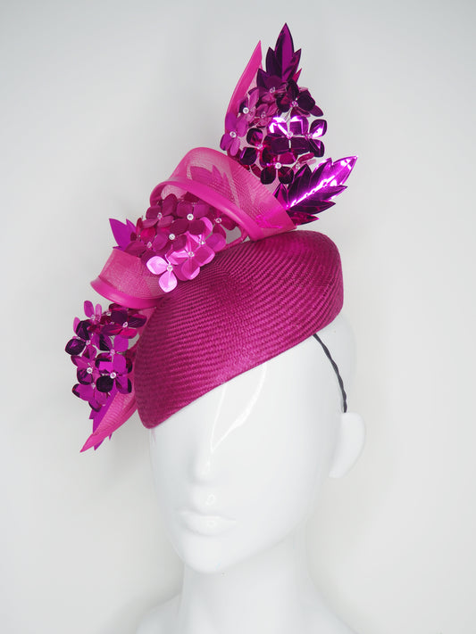 Magenta Mistress - Magenta Parisisal straw with Magenta Sequin hydrangea flowers
