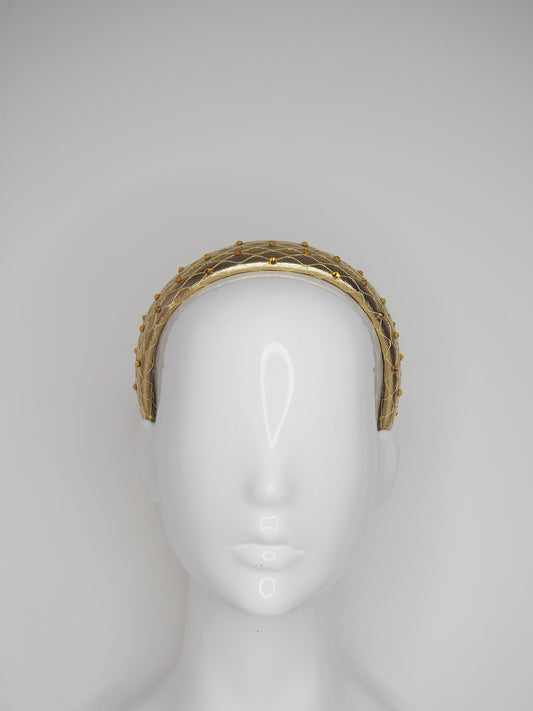 Zoe Sparkle - Leather padded headband with veil and Crystal Detial - Gold