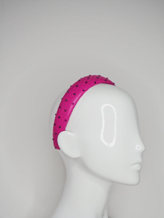 Zoe Sparkle - Leather padded headband with veil and Crystal Detail - hot pink