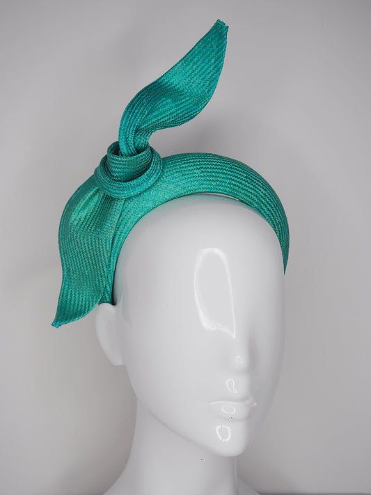 Tied in a Knot- Jade green 3d blocked headband with a simple straw knot