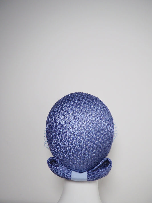 Pretty Little Thing - Periwinkle vintage straw pillbox with bow detail and ceylon sapphire crystal embellished veil