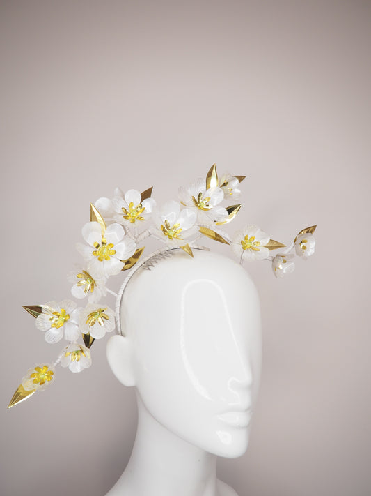 Dancing Diphylleia - Cascading skeleton flowers dancing across a leather wrapped headband