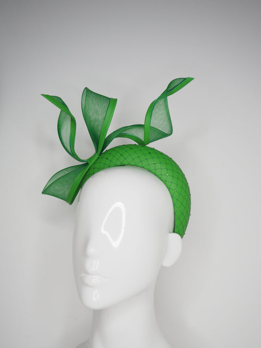 Luck of the Irish - Apple green Leather 3d headband with leather edged bow and crystal detail