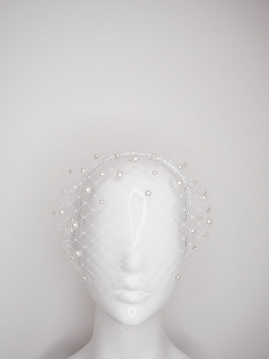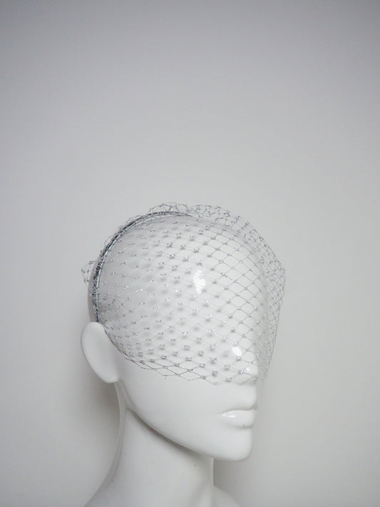 Mimi - Silver - Leather petite 3d headband with veil and crystal detail