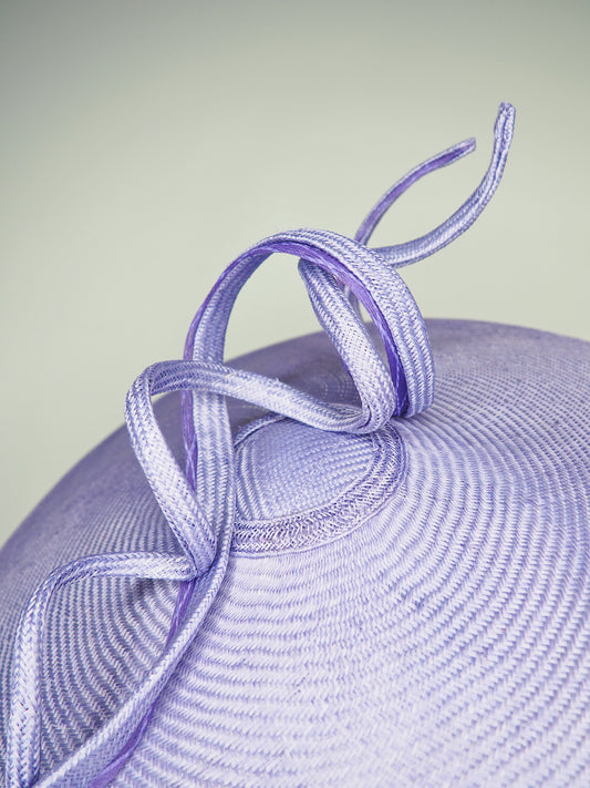 Lilac Loop - lilac hand dyed straw brim coolie with a crinoline edged straw swirl and wired straw loop.