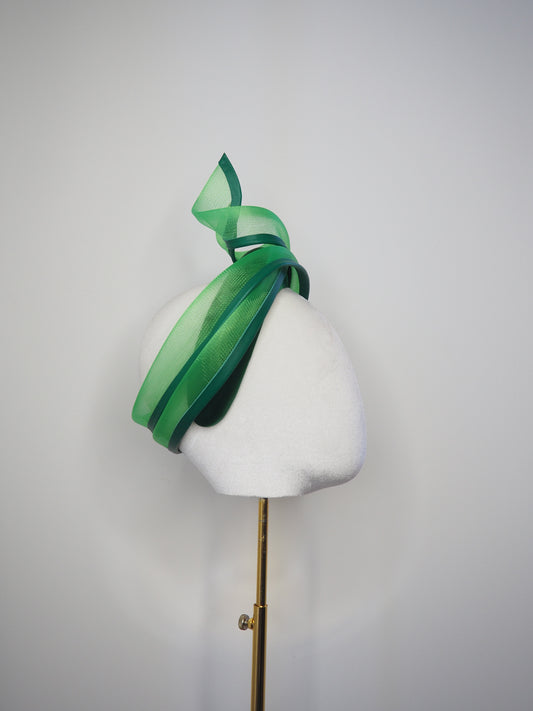 Verdant Flame - Emerald Green Satin 3d headband with wired crinoline turban swirl
