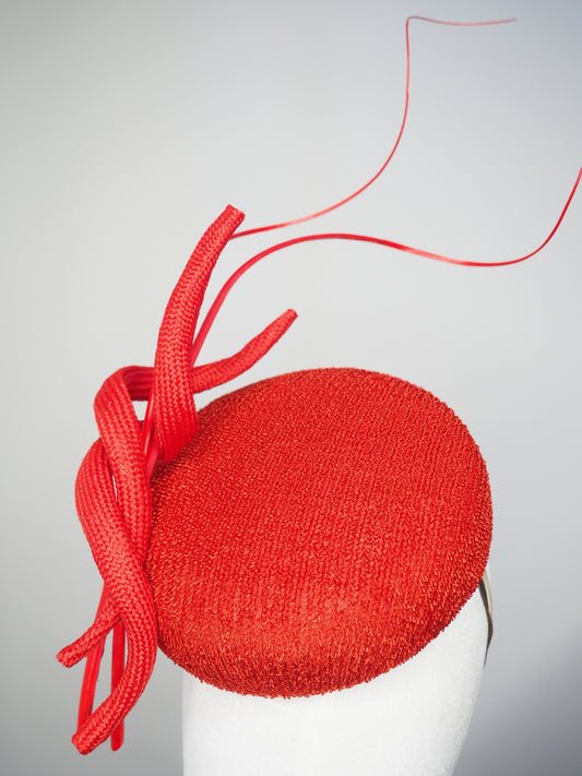 Scarlet Swirl - Red vintage straw cloth button vintage straw cloth button beret with wires parisissal swirls and quills