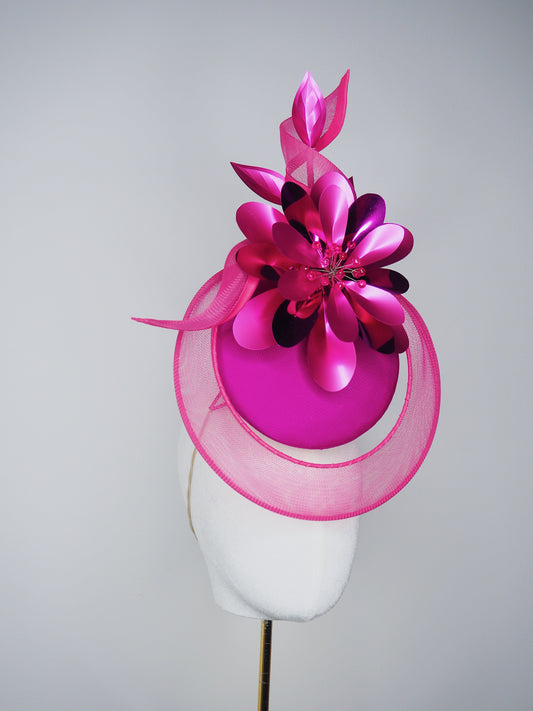 Magenta Muse - Magenta floral percher with crinoline veil and large flower