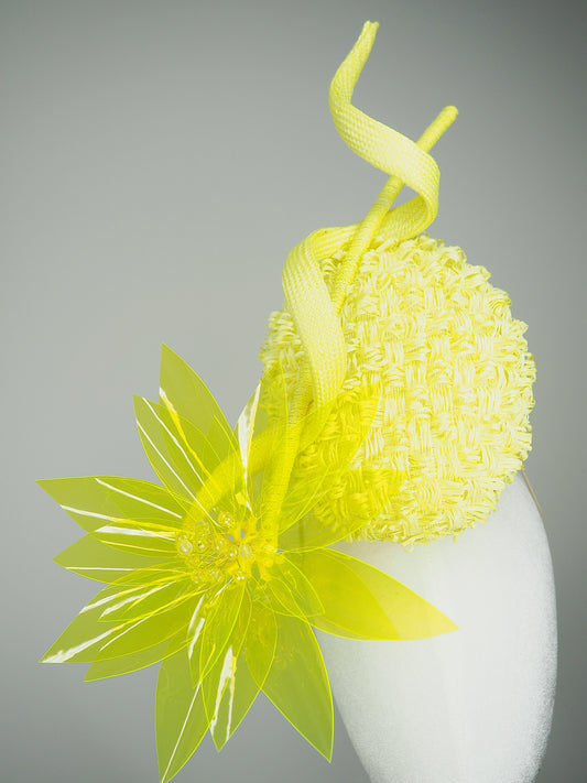 Citron Spark - Fluro yellow vintage straw percher with clear plastic fluro yellow starburst
